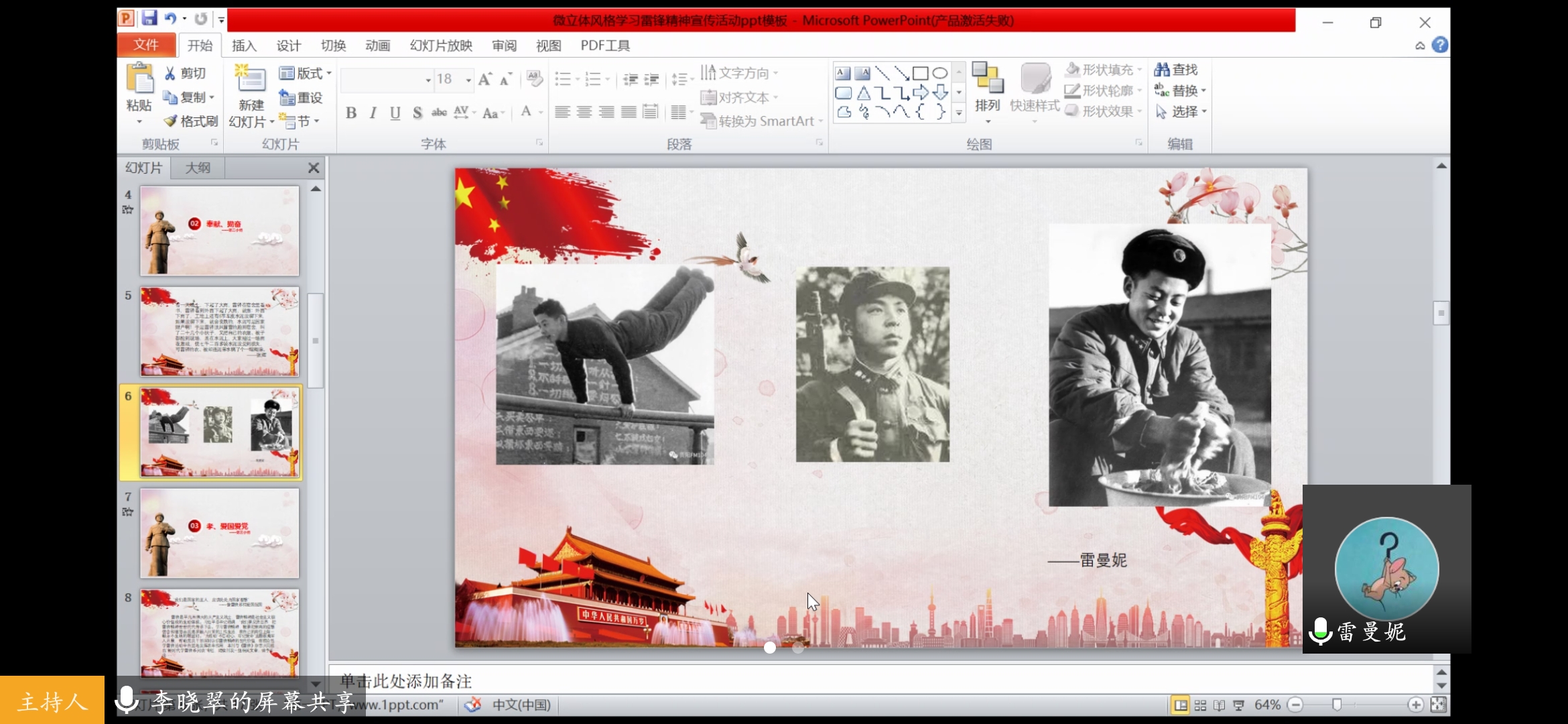 活动开展过程中,各小组同学从不同角度解析雷锋精神,讲述了雷锋的“勤俭节约、无私奉献、爱国爱党、钉子精神、爱岗敬业”等良好品质。大家积极分享组内学习的收获与感悟。在分享过程中,充分运用了视频、诗词、故事等形式将雷锋精神生动的呈现出来。还有同学举出近日来的国之脊梁——钟南山院士的事例生动诠释雷锋精神在当代的传承。活动最后,李晓翠对本次活动进行了总结。