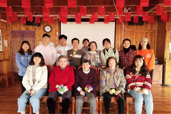 活动结束后,志愿者们与老人们合影留念。