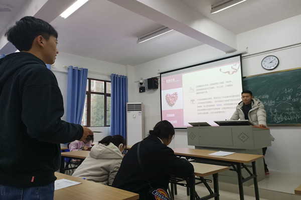 班会伊始,班委成员向同学们分发了宣传预防艾滋病的小册子并向同学们介绍了昨天在我校召开的湖南省2019年世界艾滋病日宣传活动的情况。而后,雷国顺通过PPT分别向同学们进一步的介绍了艾滋病的由来、传染方式、和一些有关于艾滋病的预防措施以及治疗常识。他指出,虽然到目前为止艾滋病无根治方法,但可有效抑制,我们在平常生活中,在注意保护自己健康的同时,也不能够歧视艾滋病患者,我们应该要鼓励他们积极接受治疗,坚强生活下去。活动最后,为了更好的调动同学们的活动参与度,班委组织了本班同学进行了现场分组讨论交流,进一步加深同学们对于艾滋病的了解程度。