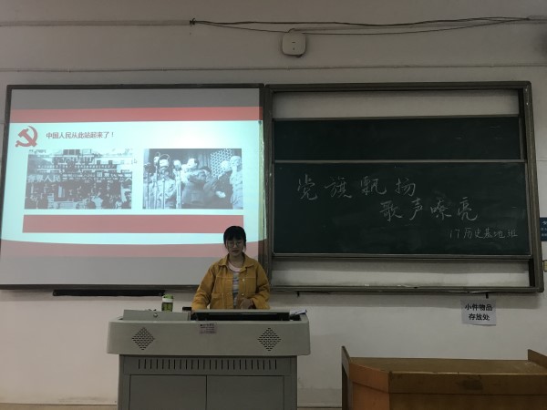 (通讯员 卢晨昱 谢志宇)10月13日上午10时许,2017级历史基地班在sunbet申搏308教室举办以“党旗飘扬,国歌嘹亮”为主题的团日活动,此次团日活动由支部成员龚灿主持,团支部成员全体参加。活动旨在带领支部成员回顾新中国自建国以来所取得的一系列成就,共贺中华人民共和国成立七十周年。