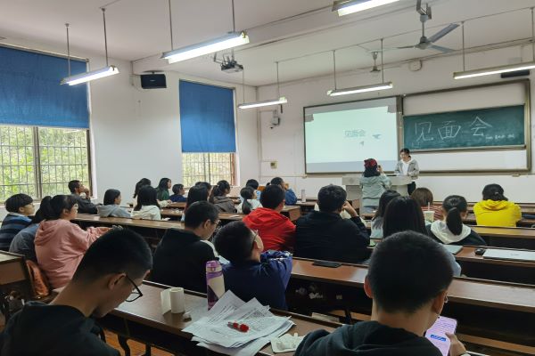 班导师伍成泉以风趣的开场白开启了“破冰之旅”,亲切和蔼地鼓励同学们多多交流,熟悉彼此,增进感情。随后班导师离场,给予了同学们足够的自由交流空间。同学们正式开始对这个新的大家庭有了更深入的了解。见面会上,同学们纷纷踊跃上台介绍自己,以纯正的家乡味儿向其他同学介绍自己的家乡,展示家乡的方言和特色,来自五湖四海的同学一起交流南北方的差异,分享来到新环境开启新生活的点点滴滴。同学们谨遵班导师叮嘱,积极参与,热情互动。