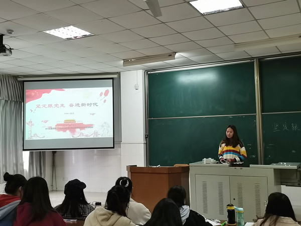 (通讯员 胡文涛 李晓翠)10月7日上午,2018级历史教育二班举办以“坚定跟党走,奋进新时代”为主题的团日活动。此次活动由团支书李晓翠主持,团支部全体成员参加。