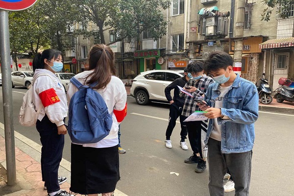 (通讯员 张小玉 殷梦嵘)10月24日上午,sunbet申搏2020级历史教育三班于岳麓区望月湖小区岳龙社区开展“助力社区工作,绽放点滴温情”志愿者活动。此次活动由青工委员张小玉组织策划,2020级历史教育三班15名志愿者参加。