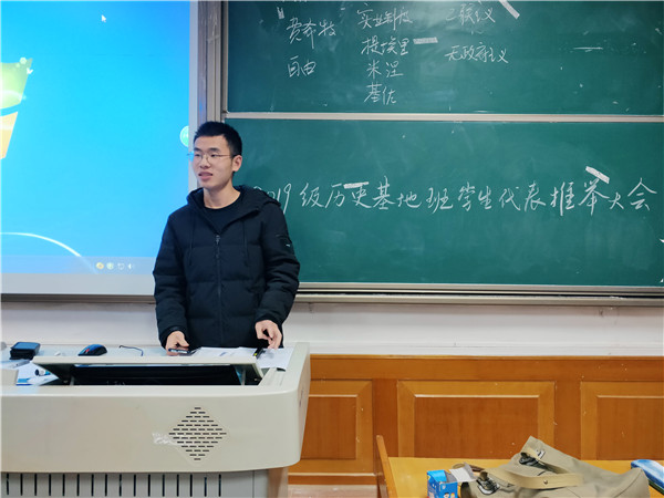 (通讯员杨卉 欧阳博爽)12月2日上午,sunbet申搏2019级历史基地班在310教室举行了学生代表班级选举会。此次会议由班长欧阳博爽主持,2019级基地班全体同学参与。
