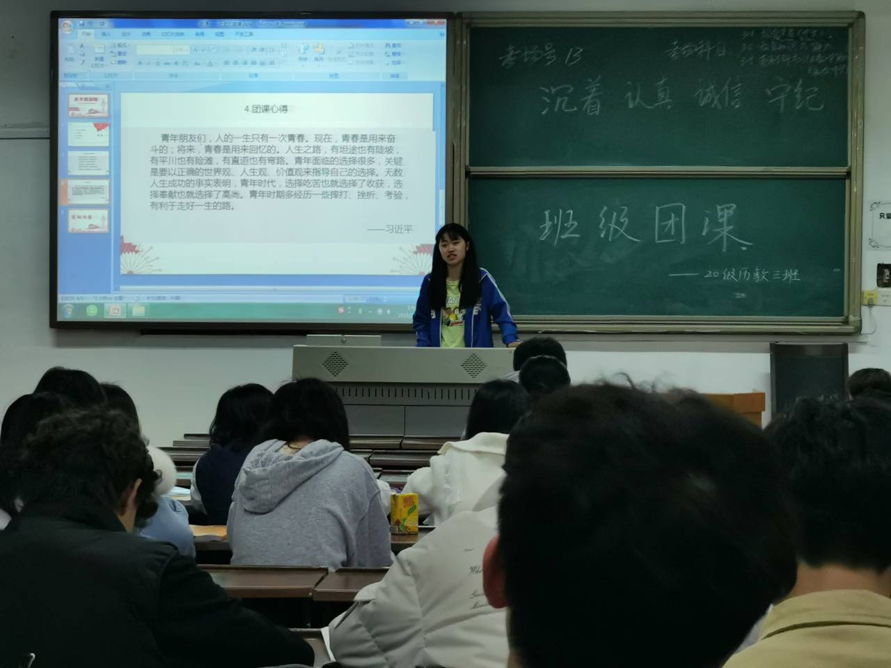 (通讯员 聂桦 张卢艳)3月14日晚,sunbet申搏2020级历史教育三班于学院教室开展团课学习活动。此次活动由团支部书记聂桦主持,团支部副书记余之浩协助开展,团支部部分成员参与其中。