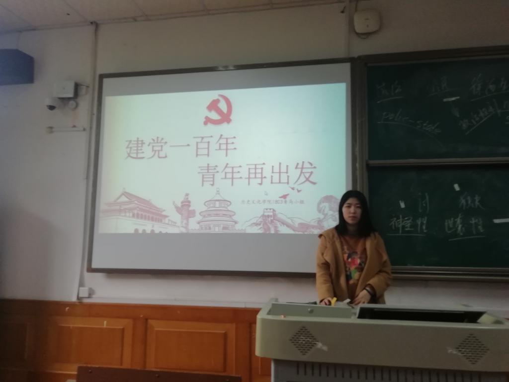 俞何柯妮围绕党史、青年人的使命与担当等要点对此次学习主题进行简要介绍。活动过程中,俞何柯妮组织全体成员观看了学习强国平台的党史宣传视频,并带领小组成员对党的建设历程进行深入学习。在观看视频之后,成员们对此次学习内容进行了讨论并发表了感想。其中卢逸同学发言,我们青年人要在奋斗中释放青春激情,追逐青春理想。大家纷纷表示,以更加坚定的信念和更加昂扬的斗志投入中国特色社会主义事业建设中,以优异的成绩献礼建党100周年!
