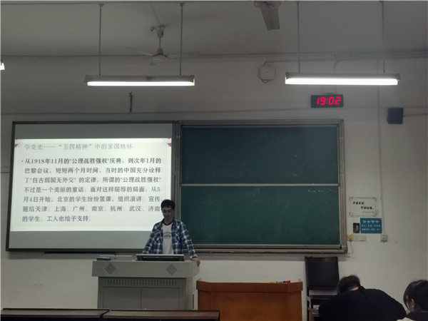 在此次团课过程中,本支部采用了宣讲与观看影视作品相结合的形式,努力渲染主旋律氛围,提高团课学习的趣味性与吸引力,调动同学们参与团课的积极性与主动性。团课过程中,主讲人余之浩采用生动活泼的语言向同学们介绍了五四运动的来龙去脉以及五四运动对于中国无产阶级队伍发展壮大的具体作用,寓教于乐,让同学们在愉悦的气氛中加深了对于五四运动的理解,同时也对于自身的历史使命与社会责任有了更为清晰的认识。
