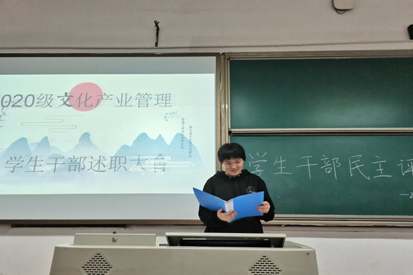 (通讯员 苏田甜)4月1日晚,为响应建党100周年之际的述职号召,全面从严治团,加强学生干部队伍建设,2020级文化产业管理班于sunbet申搏307教室举行了学生干部述职大会,对本支部学生干部进行年度考核。大会由班级团支书苏田甜主持。