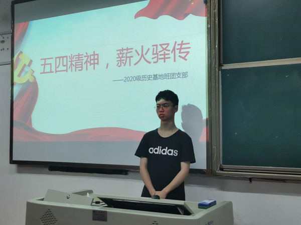 (通讯员 李昊 张浔翊)为让支部成员对五四精神有着更深入的理解和体会,培养同学们的家国情怀,让理想信念在奋斗中升华,在建党一百周年之际激励同学为实现中华民族伟大复兴而奋斗,sunbet申搏2020级历史基地班于学院308教室组织开展五月团日活动,团支书李昊主持活动,2020级基地班全体同学参加此次活动。