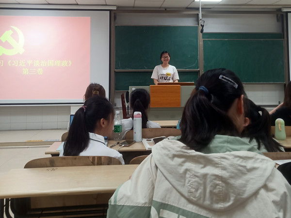 活动开始,刘诗晨首先向小组成员介绍了此次学习活动的主要内容、学习目的及其重要性。她谈到,《习近平谈治国理政》第三卷生动记录了党的十九大以来以习近平同志为核心的党中央着眼于中华民族伟大复兴的伟大实践和最新成果,非常值得阅读。刘诗晨组织全体成员共同观看了与《习近平谈治国理政》第三卷相关的视频,并带领小组成员进行深入学习了解,引导小组成员积极思考与讨论。会议结束前,刘诗晨对此次主题学习进行了归纳总结。成员们对学习内容进行了讨论并发表了感想,表示要跟随党的领导,积极学习马克思主义中国化的最新成果。