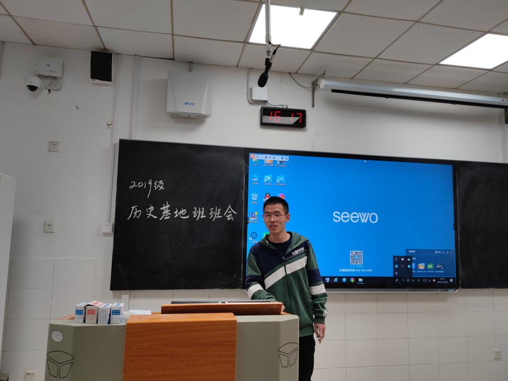 (通讯录 杨卉 欧阳博爽)2021年10月25日中午,sunbet申搏2019级历史基地班在至善楼106教师召开了本学期第一次班会暨班导师见面会,此次会议由班长欧阳博爽主持,班导师杨超、基地班全体同学参加。