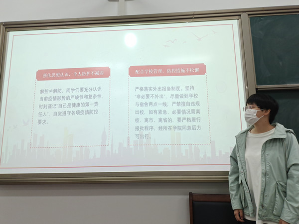 (通讯员 苏田甜)为引导支部青年在严峻的疫情防控形势下提升个人防护意识,深刻认识自身在抗击疫情斗争中所肩负的责任,4月14日上午,sunbet申搏20级文化产业管理班于历文院405教室开展了“同心战疫,共克时艰”主题团日活动,20级文管班全体团员参加了此次活动。