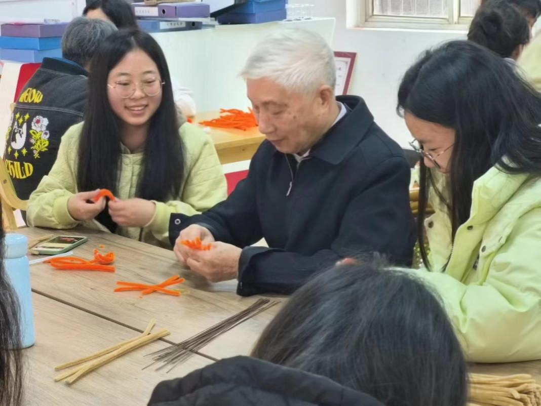 志愿者协助老人做手工