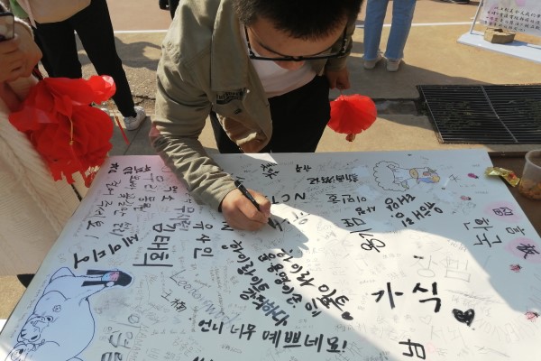 活动前期,春秋学社理事通过QQ空间,会员群,微信群宣传,向会员们展示了韩国风采,并积极协助韩国留学生进行了网络拉票,与韩国留学生进行了积极的交流。活动伊始,理事长杨运佳带领春秋学社理事提前到场,布置场地。同 时,来自韩国的留学生带来了亲手制作的本国特色食物。活动过程中,春秋学社理事们将特色食物分发给观众,让他们能够感受到异国风情。世界文化交流周活动正式开始后,各国留学生着本国特色服装上台表演了节目,以各自国家的特色歌舞为主。活动结束前,理事们纷纷与韩国留学生合影留念,并认真打扫卫生清理场地。