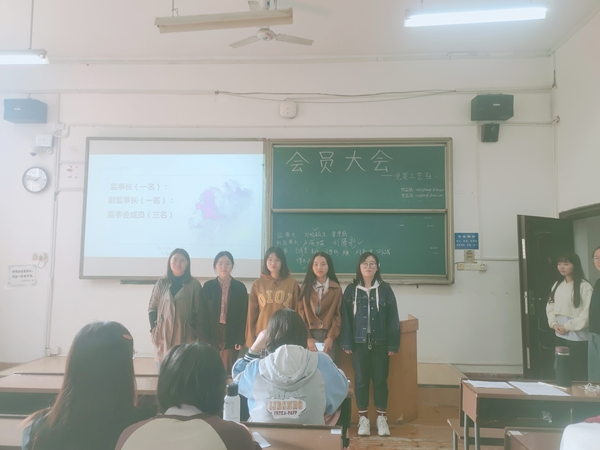 理事长向红叶简要地向各位会员介绍社团的基本情况和新加入的理事。同时,也通过幻灯片向会员介绍监事会和项目组的职责,帮助会员更好地了解社团的运行。同时,各理事组织会员学习《湖南师范大学社团民主管理办法》、《湖南师范大学社团会员管理条例》与社团章程,使会员清晰自身的权利和义务,增强社团的组织纪律性。会议最后,经过部分会员竞选和全体成员投票,新一届觅美工艺社监事会正式产生。经选举,刘杨颖洁为监事长,刘倩影为副监事长,白青青、朱娟、谭舒洋为监事。