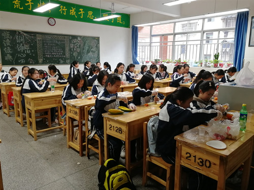 活动之前,志愿者备好教案和幻灯片和食材,提前到达了湘二中学,为学生们的书桌上铺上保鲜膜以保证食材的卫生和教室的整洁。