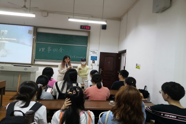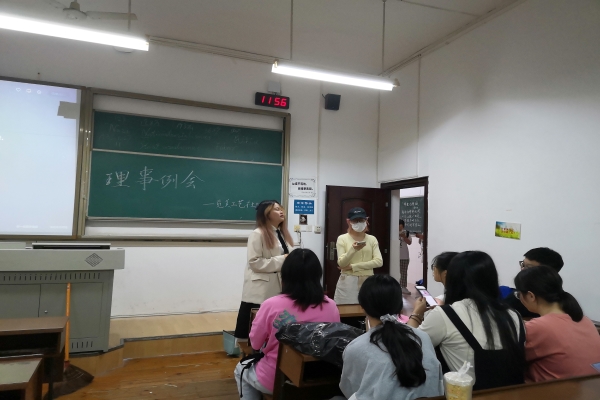会议伊始,邵琪首先对社团四月份工作进行总结,指出存在的优点和不足,并让理事们针对活动中出现的问题提出解决办法,防止在之后的工作中再出现类似问题。在对社团四月份工作进行总结和反思后,邵琪开始布置社团五月份需要进行的工作,主要为校十佳评选材料的准备、本学期第二次会员活动和建党一百周年系列团日活动。在会议中,就社团五月份将要开展的工作,邵琪给每位理事分配了具体任务,并对任务完成过程中可能出现的问题进行预设和提出解决办法。会议最后,邵琪鼓励全体理事积极认真完成各项工作,站好最后一班岗。