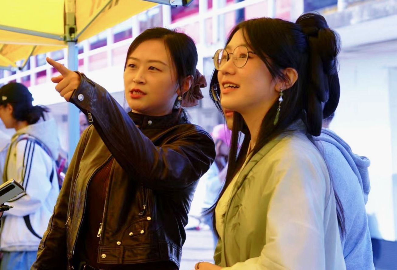 活动伊始,历文院四个社团共同表演古风歌舞剧《牵丝戏》,展示传统文化魅力。随后各社团通过分发宣传资料、组织趣味活动、赠送活动礼品等形式,展现社团特色。如文物爱好者协会开展的飞羽入壶、瓦当拓印、甲骨猜字等活动,将传统历史文化的精神内涵与多彩的活动形式相结合,利用积分兑换奖品的活动模式,吸引新老会员积极参与,充分展现历文院学子对中华传统文化的热爱与创新传承。活动期间,院学工办主任兼学生社团管理服务中心指导老师陈敏前来指导,现场了解各社团招新情况,并与现场的各社团理事和新老会员共同参加活动并合影。活动同时,各社团展位前,同学们有序排队咨询社团详情并办理报名手续,各社团理事按照预定方案组织招新工作,确保活动有序进行。
