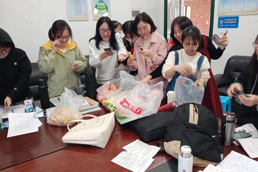 试课结束,两位指导老师为队员们送上了水果、零食“大礼包”,并嘱咐队员们放平心态,继续保持细致认真、团结友爱的态度,共同打磨出一堂完美的公开课,为教育实习画上一个圆满的句号。