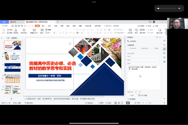 (通讯员 王格子怡 雷国顺)11月8日晚7点,长沙市第十一中学龚宇老师为sunbet申搏师生线上讲学。讲座主题为“统编高中历史必修、必选教材的教学思考和实践”,讲座由成丽老师主持,历文院部分本科生、研究生以及其他兄弟院校师生参加。