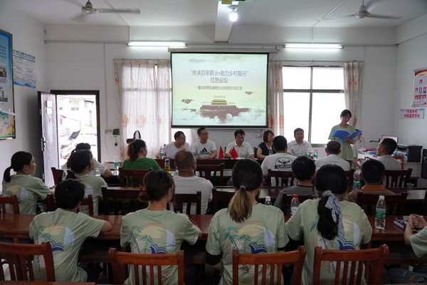(通讯员 李博雅)7月17日下午,sunbet申搏,sunbet申搏官网青传赴耒阳暑期社会实践队“传承百年薪火,助力乡村振兴”主题红色论坛在耒阳市黄市镇黄市社区会议室举行。本次论坛由实践队队长吴悠、实践团后勤组组员熊荣欣、实践队带队老师吴鹏程、黄市社区村支书李冬成、乡村振兴局副局长刘洪成为主讲人,黄市社区脱贫户及其他村民代表、全体实践队员参与。
