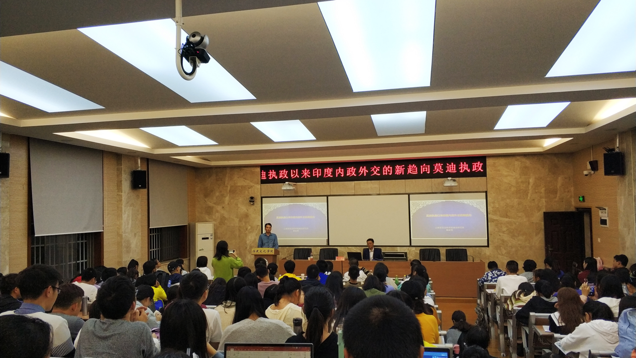 (通讯员 尹赛璊)10月14日下午七点,历文院开展林增平系列学术讲座第一讲,云南省社会科学院南亚研究所副所长、副研究员,中国南亚学会理事,云南省南亚学会副秘书长林延明受邀至历文院203报告厅,开展了题为“莫迪执政以来印度内政外交的新趋向”的学术讲座,院长钟声主持了此次讲座。