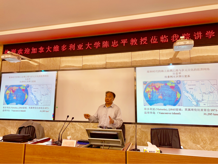 (通讯员 金楠娟)10月24日晚,加拿大维多利亚大学陈忠平教授受邀至历文院,在203报告厅作“郑和时代的海上丝绸之路与多元文化的世界网络”讲座。本次讲学由院长钟声主持,历文院部分师生聆听了讲座。