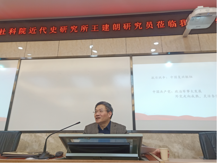 (通讯员王聃)3月27日上午,我院于203报告厅开展题为“抗战时期中共外交政策的演变”主题讲座,中国社会科学院近代史研究所研究员,清华大学特聘教授,博士生导师王建朗教授应邀主讲,李育民教授主持,我院师生积极参与。