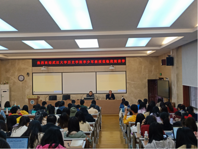 (通讯员王聃)3月27日上午,我院于203学术报告厅开展题为“关于近代长江流域与日本关系”专题讲座,讲座武汉大学历史学院教授、博士生导师,国家社会科学基金重大项目首席专家李少军教授应邀主讲。讲座由我院李育民教授主持,师生积极与会聆听学习。
