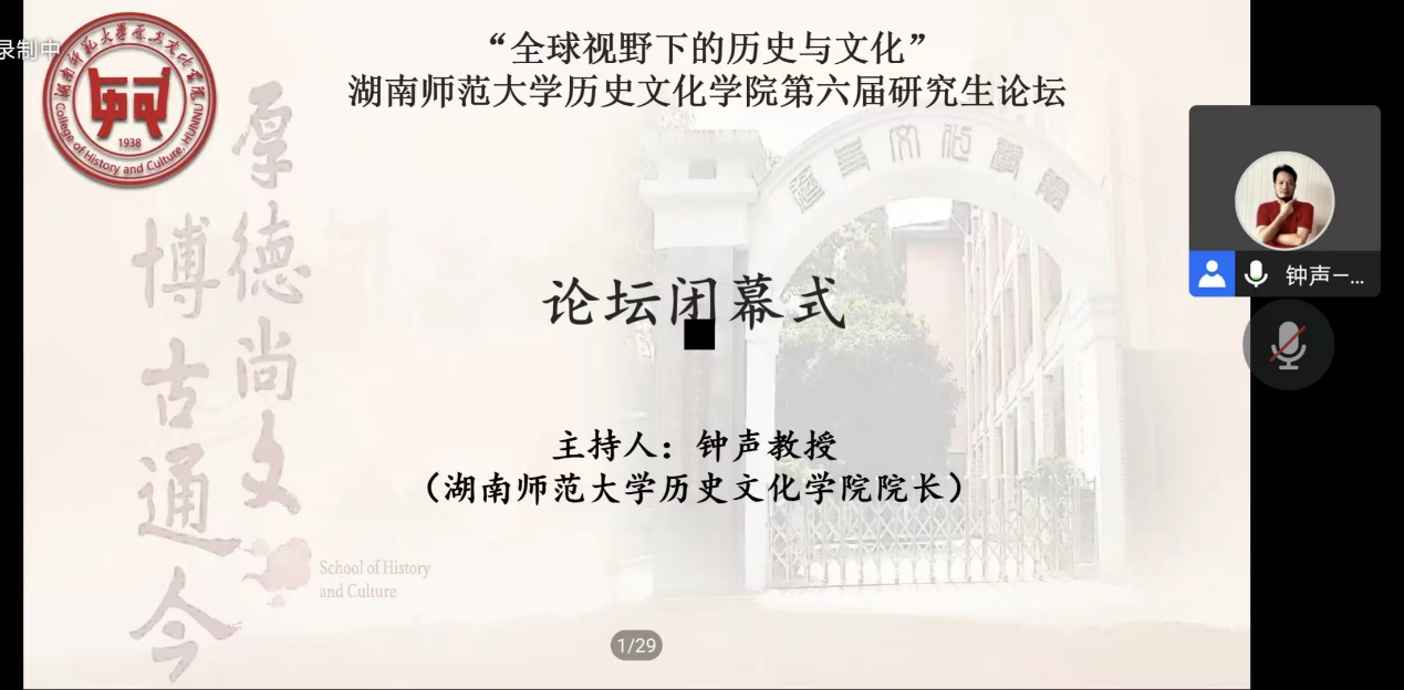 (通讯员:陶萌萌)11月11日至12日,“全球视野下的历史与文化”sunbet申搏,sunbet申搏官网第六届研究生论坛在线上顺利举行。论坛由名家学术讲座、研究生学术研讨两部分组成。会议特邀南京大学孙江教授、复旦大学李剑鸣教授、南开大学余新忠教授等3位国务院学科评议组成员、教育部长江学者特聘教授担任论坛主讲嘉宾。我校sunbet申搏院长钟声教授、副院长刘利民教授、党委委员傅新球教授等部分老师出席论坛。本次论坛得到了清华大学、复旦大学、南开大学、南京大学、武汉大学等全国各地著名高校相关研究生的积极支持,共收到论文146篇。经专家认真评选,共有67名博士、硕士研究生入选论坛。论坛活动期间,有全国各地高校历史、文化类研究生1000余人次参与活动。
