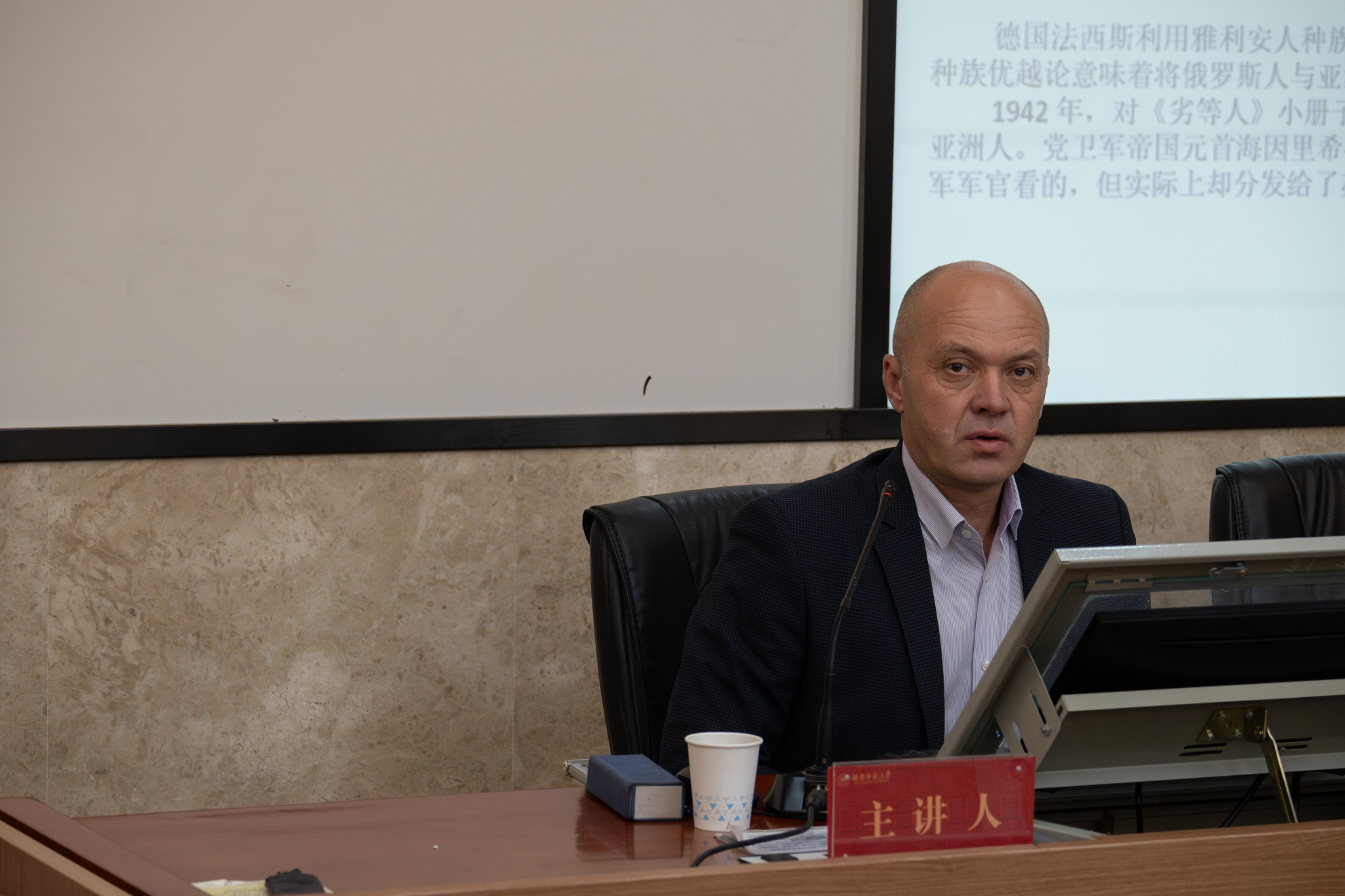 首先,亚·米·叶尔马科夫教授详细说明了种族灭绝的概念,肯定苏联和中国都是纳粹政权种族灭绝政策的受害者,种族屠杀的根源主要是种族主义思想和定居殖民主义。随后,亚·米·叶尔马科夫教授讲授了德国法西斯在二战期间对苏联的种族灭绝计划,通过列举史实的方式回顾了德国法西斯的暴行。最后,亚·米·叶尔马科夫教授介绍了苏联、俄罗斯对大屠杀的历史记忆问题,此外还包括各国不同的态度,尤其是苏联加盟共和国的看法等。