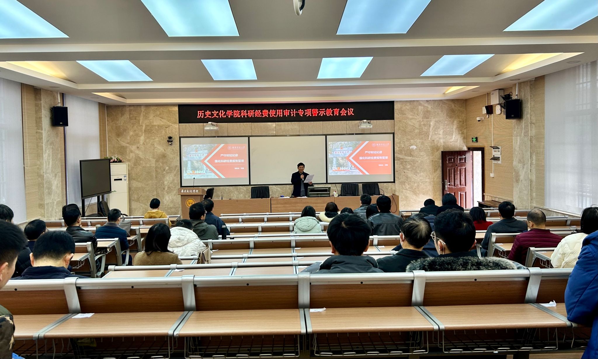 会议伊始,孔书记通报了学校专项会议的精神,公布了学校在审计过程中发现的问题及处理结果。随后,副院长刘利民带领学习了相关文件,并围绕科研经费规范使用进行了阐述,指出七项重点违规行为,包括不得挤占、挪用、虚报及套取科研经费等。会议要求进一步明确科研项目负责人的管理责任,规范科研材料的使用,加强对经费的日常检查和对科研人员及项目的动态监督。实施“黑名单”制度,对违规现象,发现一起处理一起。同时强调,科研人员应当提高政治站位及思想觉悟,加强政治学习强化整改认识,防范可能出现的风险。