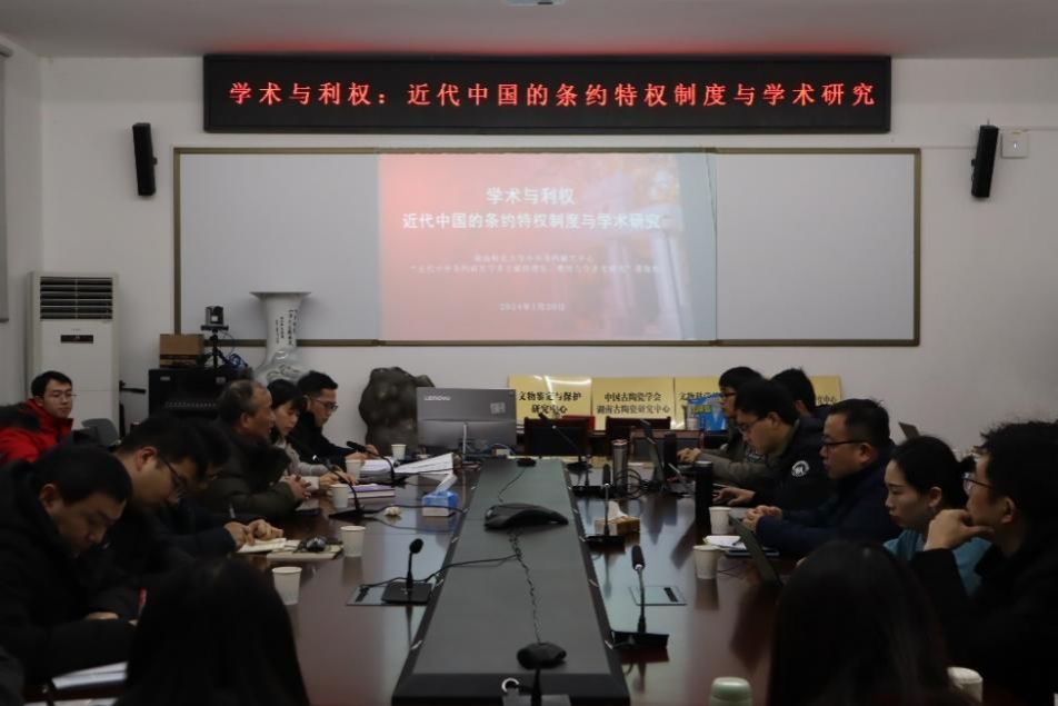 2024年1月20日,“学术与利权:近代中国的条约特权制度与学术研究”学术研讨会在sunbet申搏,sunbet申搏官网举行。本次会议由湖南师范大学中外条约研究中心、国家社科基金重大项目“近代中外条约研究学术文献的搜集、整理与学术史研究”课题组主办。中外条约研究中心研究人员、重大项目课题组成员,以及来自湖南省社会科学院、湖南师范大学、湖南科技大学、湖南中医药大学、湖南第一师范学院、湖南医药学院、衡阳师范学院、湘南学院、湖南文理学院等省内科研机构和高校的专家、在读研究生近40人与会。