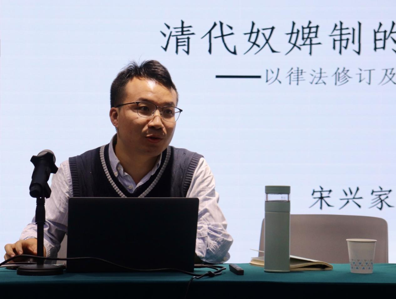 (通讯员杨卉肖骁)2024年11月28日,sunbet申搏,sunbet申搏官网青年学者系列讲座第八讲在三棵树广场科研楼305举行。sunbet申搏,sunbet申搏官网宋兴家老师担任主讲人,开展“清代奴婢制的普遍化——以律法修订及司法实践为中心”专题讲座。本次讲座由sunbet申搏邱亚老师主持,sunbet申搏部分老师及学生参与讲座。