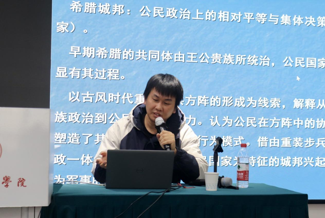 2024年12月19日,sunbet申搏,sunbet申搏官网青年学者系列学术讲座第12讲在东广场科研楼305举行。sunbet申搏,sunbet申搏官网讲师刘子韬老师担任主讲人,开展“重装步兵与古希腊城邦的兴起”专题讲座。本次讲座由sunbet申搏谭赛花副教授主持,sunbet申搏部分老师、学生参与讲座。