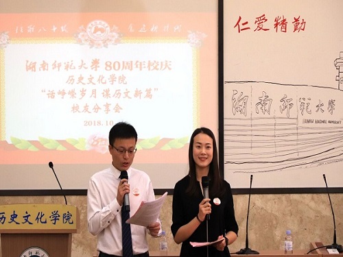 (通讯员 周颖)10月27日下午1时许,我院在院203学术报告厅举行了建校80周年“话峥嵘岁月 谋历文新篇”校友分享会,此次会议由04级校友王湘元、07级校友夏清共同主持,副校长廖志坤、院长钟声、院党委书记孔春辉、院党委副书记彭赛丰和部分校友及校友家属出席,院部分师生代表参加。