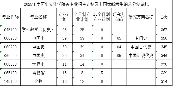 学科教学(历史):25人;中国古代史:10人;中国近现代史:27人;专门史:2人;世界史:14人;文物:12人;博物馆:8人(全日制),5人(非全日制)。