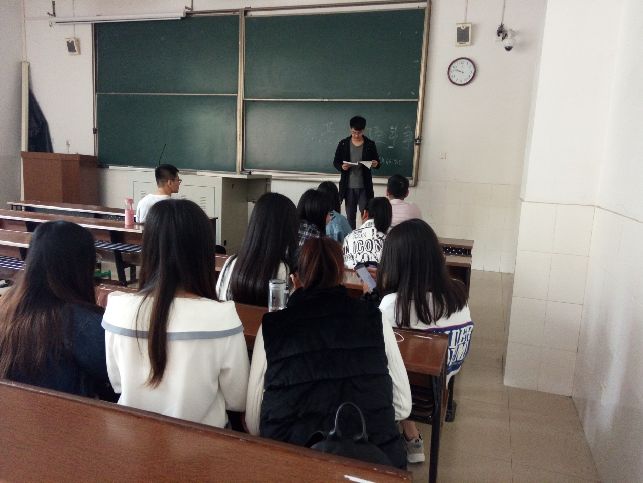 (通讯员 易凤姣)2019年4月18日上午10时,我院2018级研究生第二支部在景德楼204教室召开了以开展扫黑除恶专项斗争为主题的支部活动大会。本次会议由支部书记张开同志主持,全体支部成员均出席了本次会议,部分入党积极分子也积极参与了本次会议。