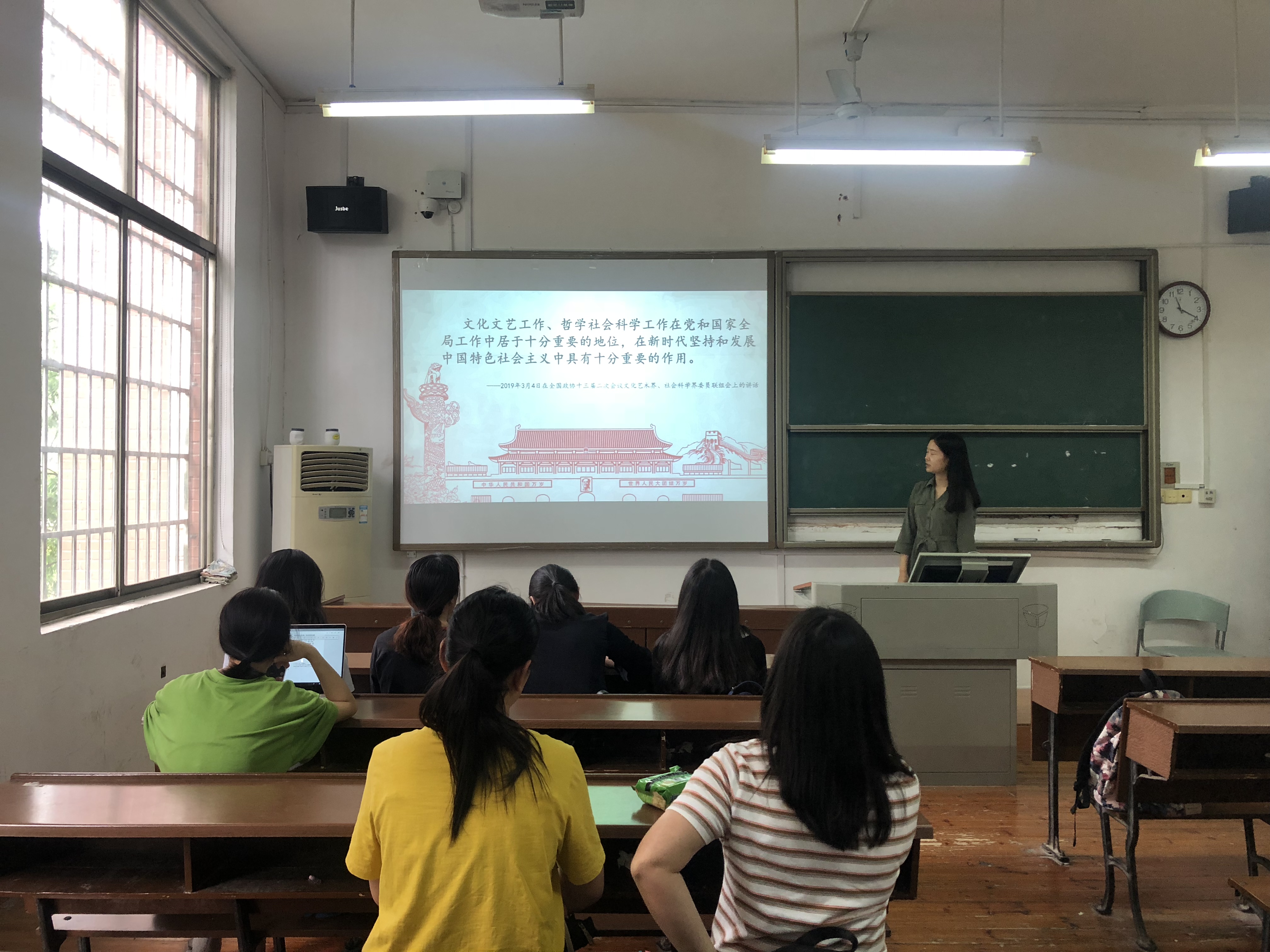 此次党日活动以学习“习近平论中国特色社会主义”为主题,主要内容为2019年习近平总书记的相关讲话。在支部书记蔡芳的主持下,重点学习了习近平总书记对文艺、社科界的讲话。习近平总书记2019年3月4日在参加全国政协十三届二次会议文化艺术界、社会科学界委员联组会时的讲话指出“文化文艺工作、哲学社会科学工作在党和国家全局工作中居于十分重要的地位,在新时代坚持和发展中国特色社会主义中具有十分重要的作用。”正值高校毕业季,学习习近平总书记对文艺、社科界的讲话,帮助我们更加深刻的认识到坚持学术研究的重要性。在活动过程中,各支部成员也各抒己见、积极发言,多名同学都强调了遵守学术规范、坚决反对学术不端的重要性。