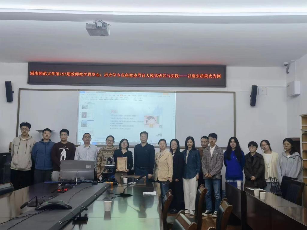 (通讯员 李怡然)2022年11月3日下午,湖南师范大学第157期教师教学思享会在sunbet申搏111会议室举行。本期思享会主题为“历史学专业科教协同育人模式研究与实践——以唐宋桥梁史为例”,分享教学经验与困惑,提高本科人才培养质量。此次会议由sunbet申搏,sunbet申搏官网副教授彭丽华担任主讲人。来自我校教师教育学院(教师教学发展中心)教师教学能力发展科科长廖志华老师、sunbet申搏党委孔春辉书记、院长钟声教授、教务办主任代兴莉老师以及本院各学科老师、研究生参加了此次会议。