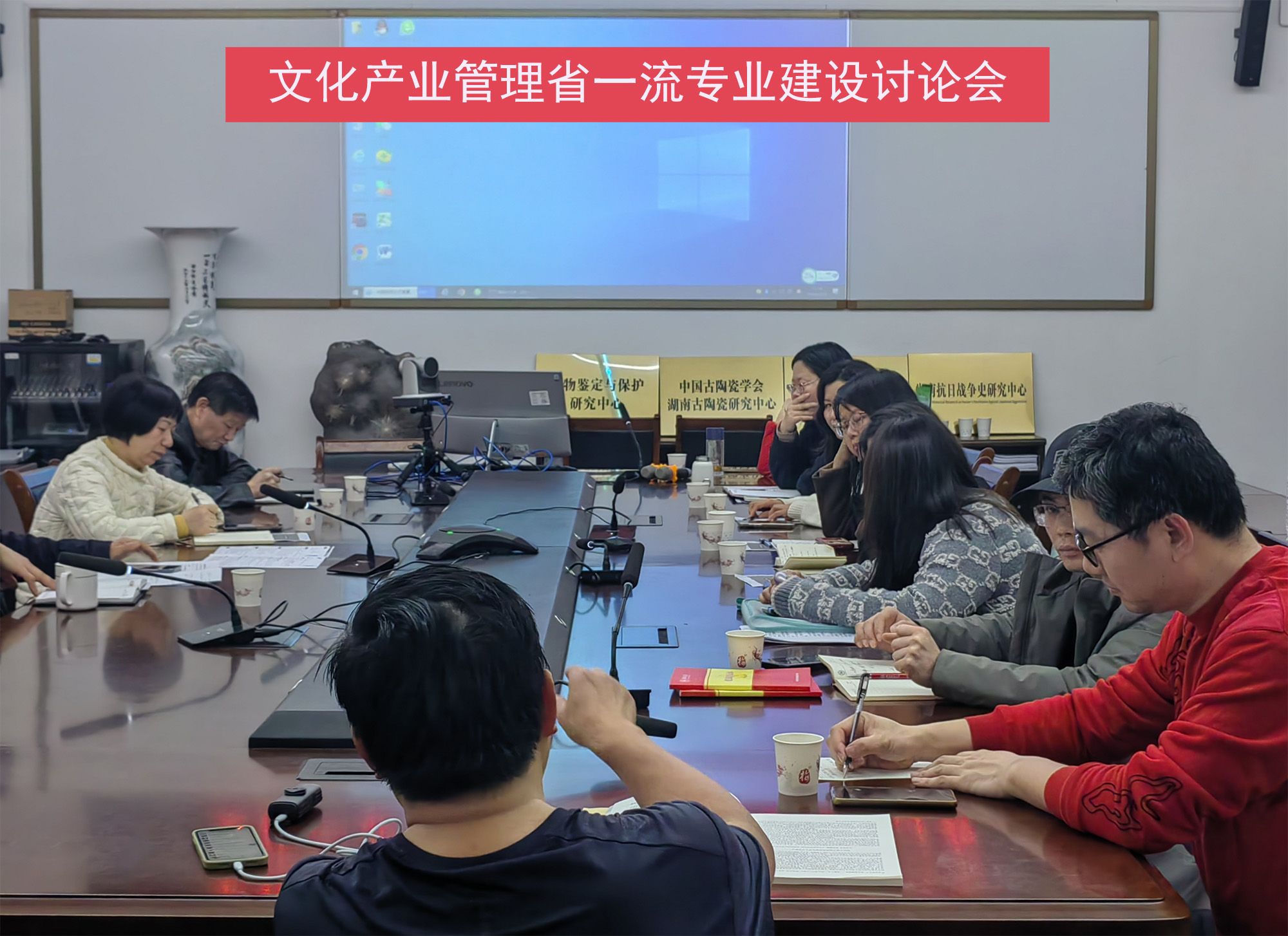 会议开始,院长刘利民总述本次会议主题,着重强调进行文化产业管理省一流专业建设,明确专业发展方向是重中之重。文化产业管理系系主任于兵总结了各个高校文产专业建设情况,指出在当前文化产业蓬勃发展的背景下,依托学院优势、提炼师大特色是本校文产专业进一步发展的必然选择。交流讨论环节,各位老师依次发言,综合考虑社会需求、地方特色、课程设置、人才培养等因素,就确定专业聚焦方向、推进本校文化产业管理专业建设发表见解并提出具体的实施方案。会议尾声,院党委书记孔春辉对本次会议做出总结,明确了文化产业管理省一流专业建设聚焦文化生产与文化服务的总方向,在专业建设中发挥学院的优势和长处,推动学校、学院发展质量更上一层楼。