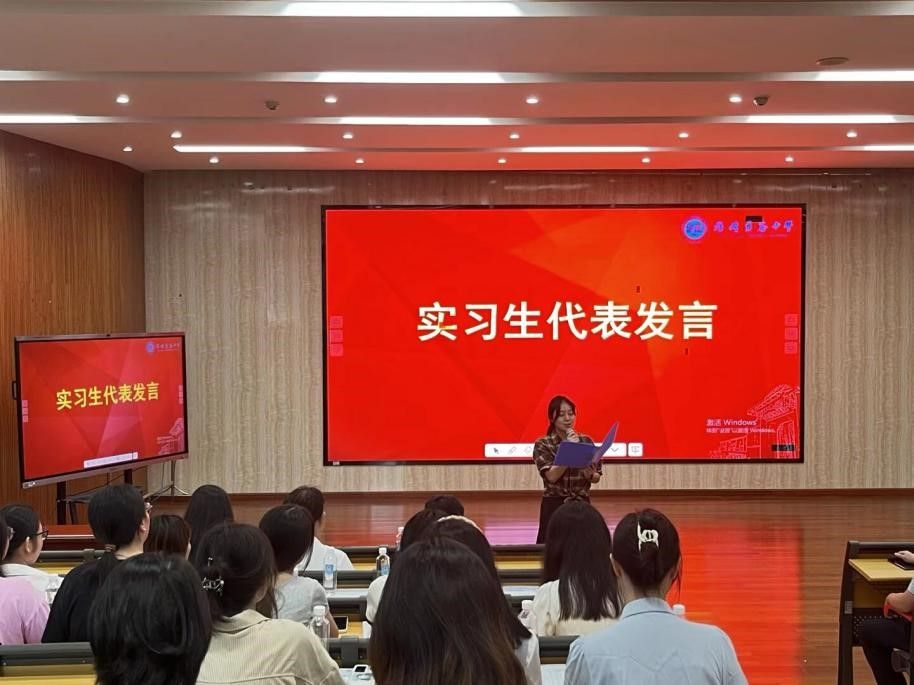 随后,实习生代表汤安琪同学上台发言。她首先代表全体实习生对雅礼麓谷中学与湖南师大sunbet申搏提供的宝贵实践机会和悉心安排表示诚挚感谢。她表示,全体实习生将秉持虚心求教、认真负责的态度,积极投身于未来的教学与班级管理工作中,努力向优秀指导教师学习,在实践中不断磨炼和提升自身综合素质,力争圆满完成本次实习任务,不辜负双方的期望与培养。