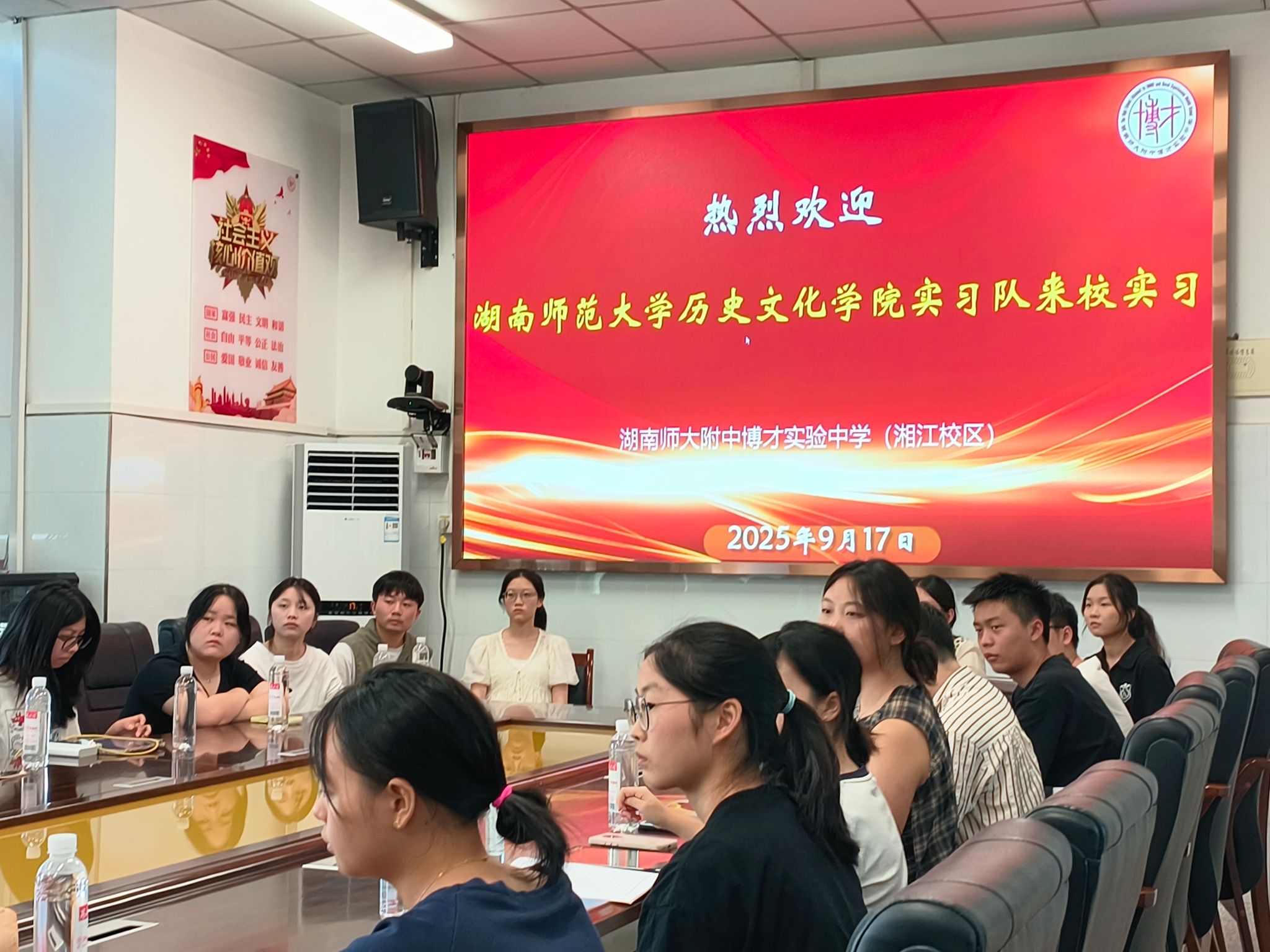 2025年9月17日,sunbet申搏,sunbet申搏官网实习队在副院长郭辉和实习指导老师张晶晶的带领下,正式入驻湖南师大附中博才实验中学(湘江校区)开启教育实习之旅。湖南师大附中博才实验中学在博闻楼四楼一会议室为实习队举办了专题见面会,明确实习要求,共话成长期许。