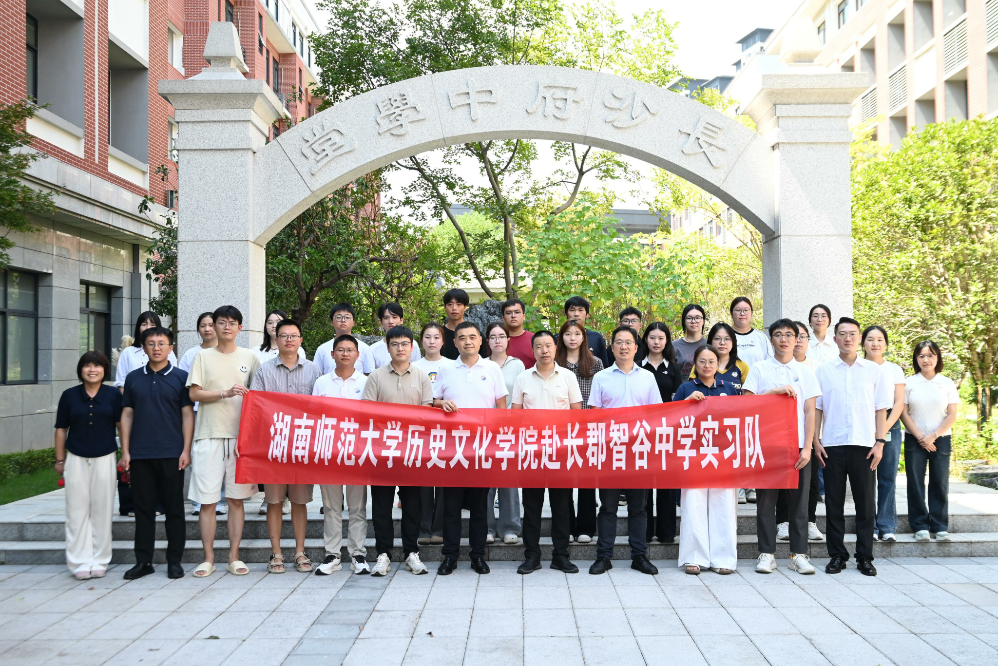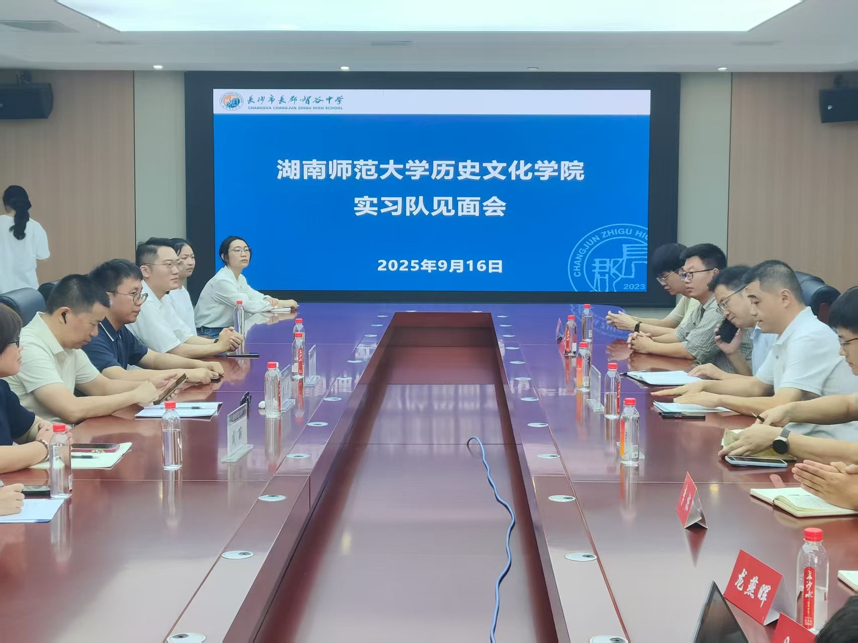 2025年9月16日,在sunbet申搏,sunbet申搏官网副院长黎天宇、实习总负责老师成丽及指导老师陈昊、李明楠的带领下,sunbet申搏,sunbet申搏官网第一实习队共20名实习生赴长郡智谷中学,于该校行政楼301会议室举行实习见面会。