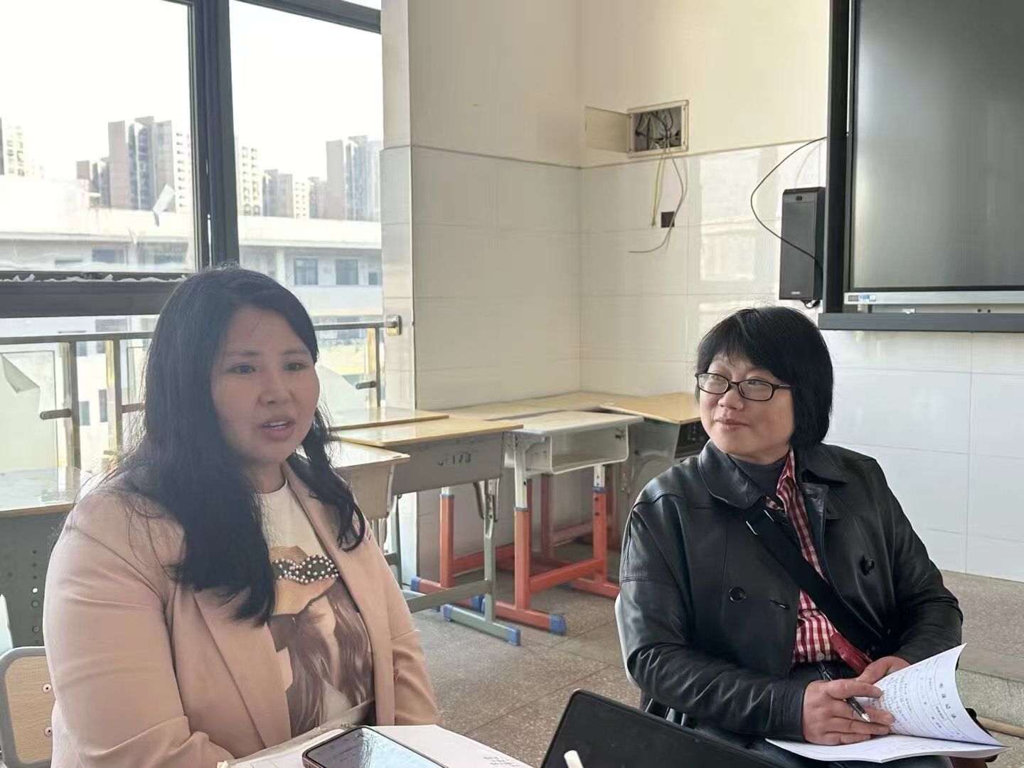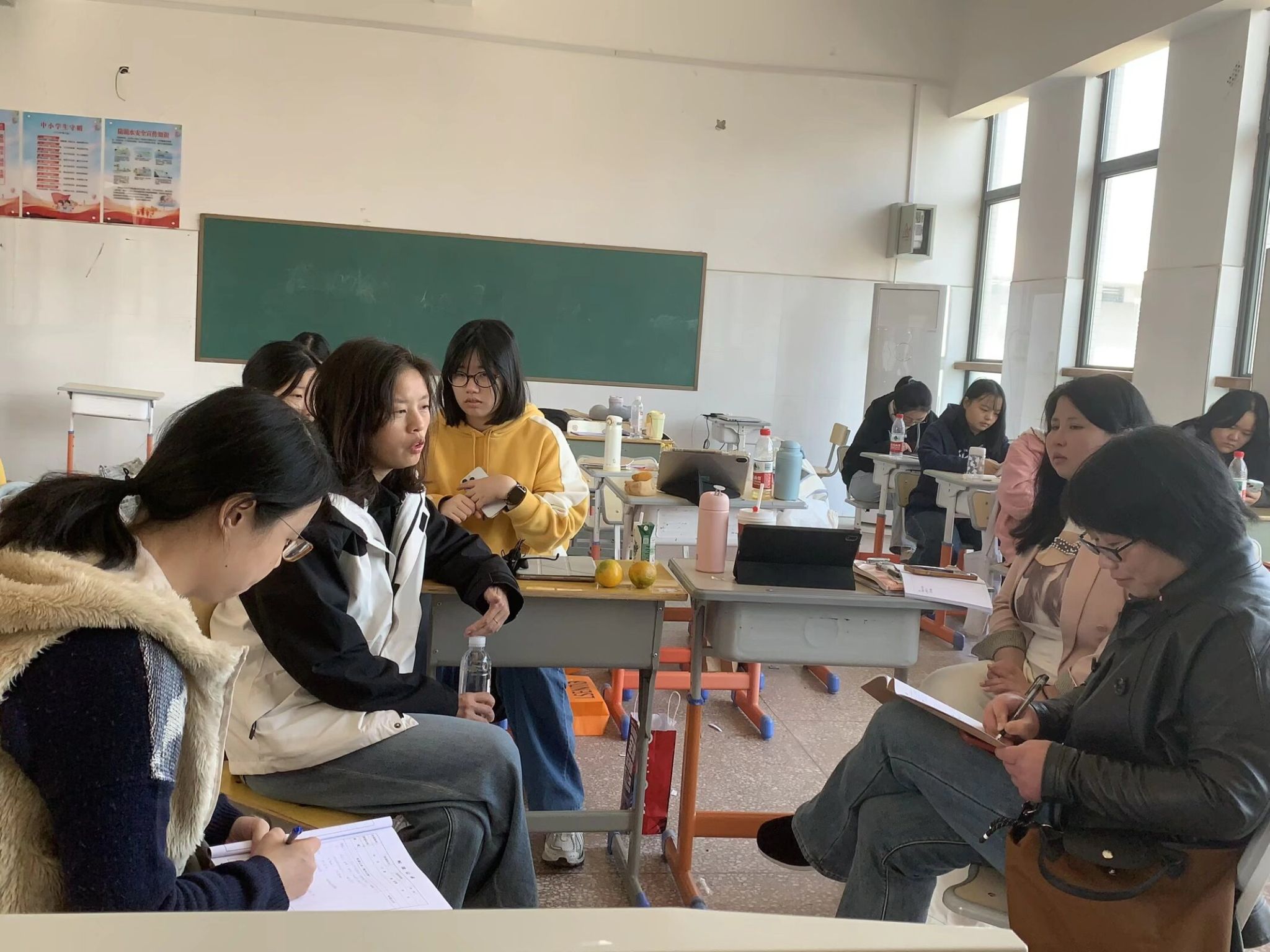 在实习工作交流环节,成丽、张晶晶老师与实习带教老师刘姗、易玲、车静展开座谈。带教老师们夸赞我校实习生专业知识扎实、态度认真、虚心求教,建议实习生们在未来教学中进一步突出学生主体地位,促进教学与育人目标的有机融合。成丽与张晶晶老师对学校提供的悉心指导表示衷心感谢,并期望实习生能在带教老师的经验传授与一线教学锤炼中,不断提升综合实践能力,充分践行“教学相长、德育为先”的培养理念。