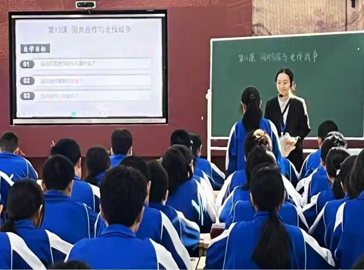 授课过程中,唐雪芹老师以问题链为导向,通过提出“国共为何合作?”“国共如何能合作?”以及“国共合作取得哪些成果?”等问题,带领学生一步步梳理教材知识,理解各历史事件发生的前后关联性。其教态自然,教学逻辑清晰,且十分注重师生互动,展现出了师大学子卓尔不群的师范素养和扎实功底。