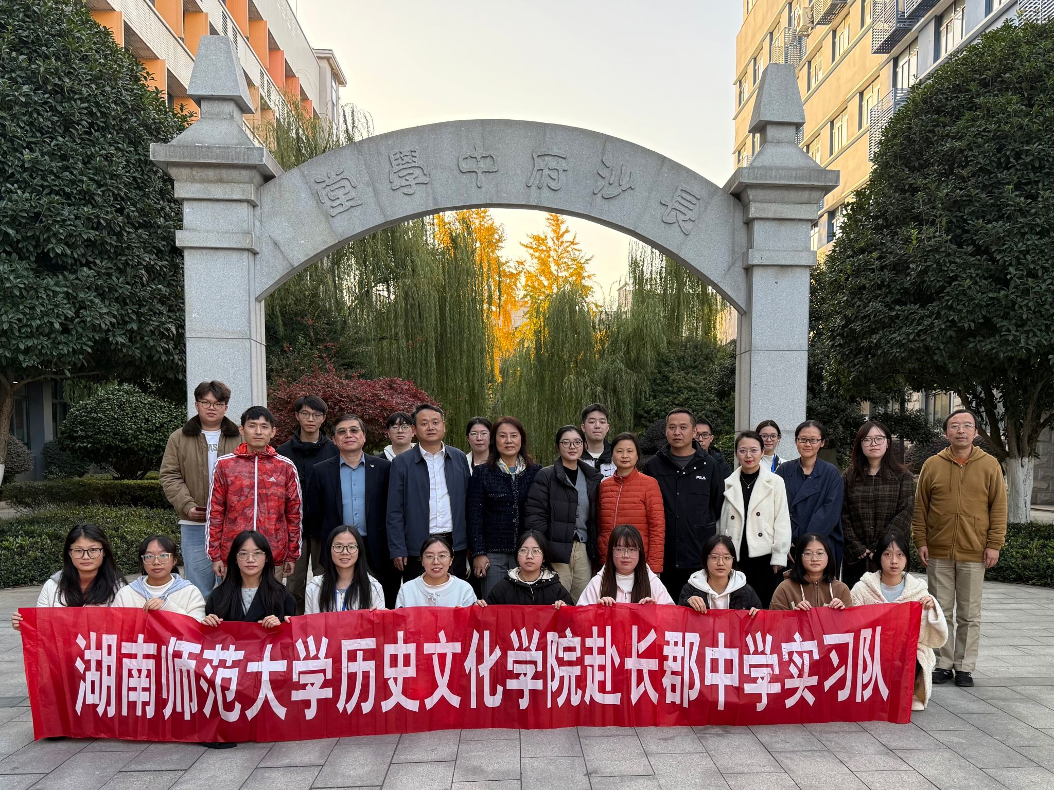 何立军向指导老师及实习队员表示诚挚谢意并提出殷切期许,希望大家始终秉承“仁爱精勤”的湖南师大校训精神,将其内化为育人初心与职业担当。马欣向长郡中学的领导老师致以崇高敬意,感谢他们的热心关怀与倾力指导,并祝贺全体实习队员圆满完成此次教育实习,在实践中收获成长。