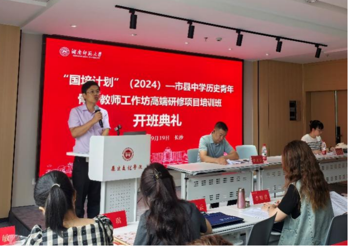 9月19日上午,sunbet申搏于科研楼305报告厅举行“国培计划”(2024)—市县中学历史青年骨干教师工作坊高端研修项目培训班开班典礼。历文院院长刘利民、副院长黎天宇,湖南大学附属中学支部书记兼培训班班导师、工作坊坊主刘觅知出席此次典礼,班主任栗壬波担任主持。