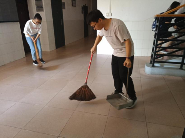 (通讯员 孙光富)为深入学习贯彻习近平总书记系列重要讲话精神,丰富发展对象实践活动的形式和载体。10月18日中午,sunbet申搏第10期发展对象第3小组成员利用课余时间,组织打扫教学楼内卫生。