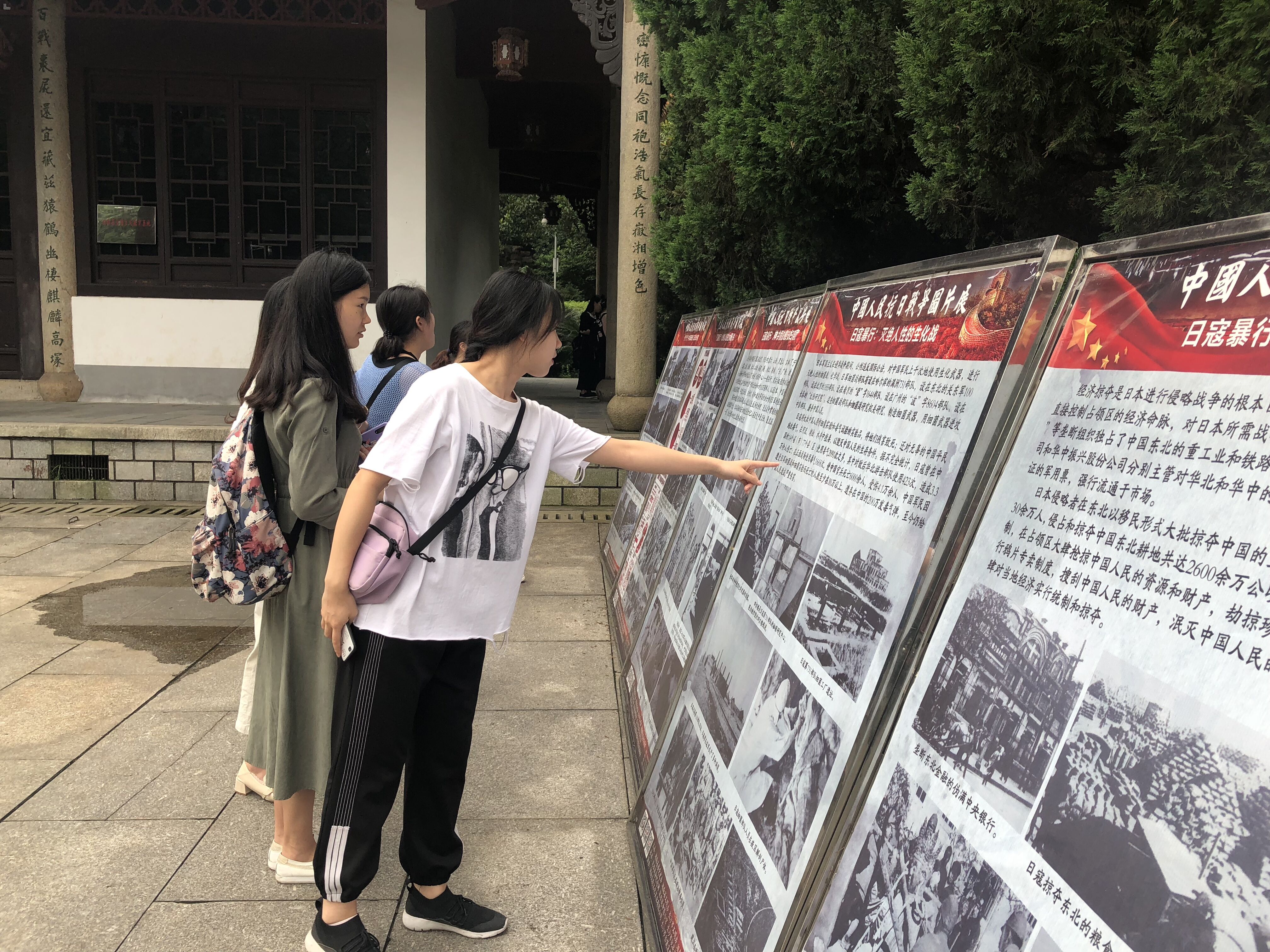 麓山巍巍,不忘忠烈昔年血泪。活动伊始,党员同志们参观了坐落于岳麓山下的第四路军阵亡将士麓山忠烈祠,回顾了第四路军淞沪抗战的英勇表现和以长沙会战为重点的抗战史实。同志们在忠烈祠外共同参观了中国人民抗日战争图片展,回顾历史的同时,党员同志们亦在感叹抗日战争的艰难与不易。随后,沿着小路拾阶而上,大家一同前往拜谒第七十三军抗战将士阵亡公墓,深切缅怀民族先烈。最后,党员同志们还一同探寻了岳麓山上诸如第九战区司令部及抗战阵亡将士名录等多处抗战遗址,党员同志们还从专业角度探讨了湖南抗战的有关史实。